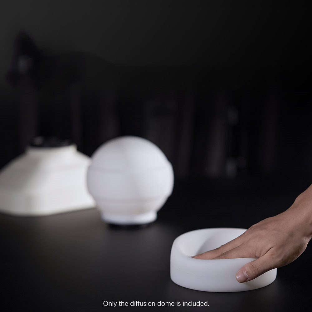 Konstrukcja typu Collapside, zapewniająca kilka sposobów kształtowania światła, okrągła kopuła zapewnia oświetlenie 360°, a tył zwija się w celu rozproszenia pod kątem 180°.