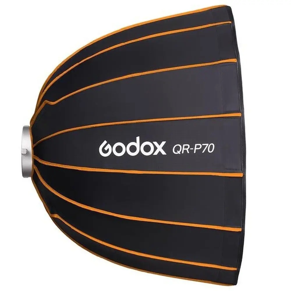 QR-P70 Paraboliczny softbox Godox serii QR wykorzystuje system szybkiego rozkładania, aby być gotowym do akcji w kilka sekund. Wysoce wszechstronny i kompatybilny, zapewnia niezawodną jakość światła i pozwala uzyskać wiele kreatywnych efektów. Dostępny w 3 różnych rozmiarach (70, 90 i 120 cm). Szybki i łatwy w użyciu softbox serii QR jest idealnym towarzyszem podczas robienia zdjęć we wnętrzach i w plenerze.