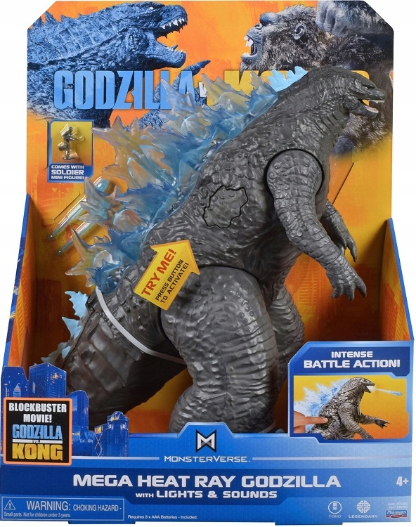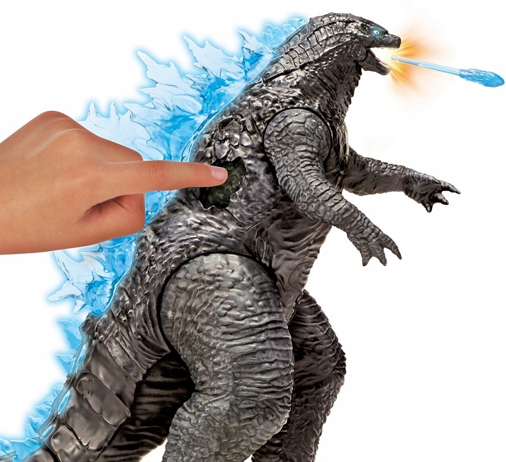 Godzilla w dużej wersji zapewni wiele emocji podczas szalonej zabawy w odgrywanie najzacieklejszych walk między bohaterami filmu Godzilla vs. Kong! Zabawka ma aż 33 cm wysokości, za umożliwiło rzeczywiste przedstawienie każdego szczegółu jej wyglądu – jej cielsko ma szary kolor, zaś wielkie łapy zakończone są ostrymi pazurami. Wzdłuż całego kręgosłupa Godzilli widnieją niebieskie wypustki – naciśnij przycisk funkcyjny z boku figurki, a zobaczysz, jak wypustki zaczynają mienić się światłem, zaś wokół rozbrzmiewają ryki bojowe potwora!