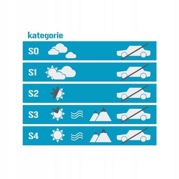 - Kategoria: S2 (18 - 43%, kolor pomarańczowy, przeznaczone na zimę i wiosnę, w okresie zachmurzenia i lekkiej mgły)