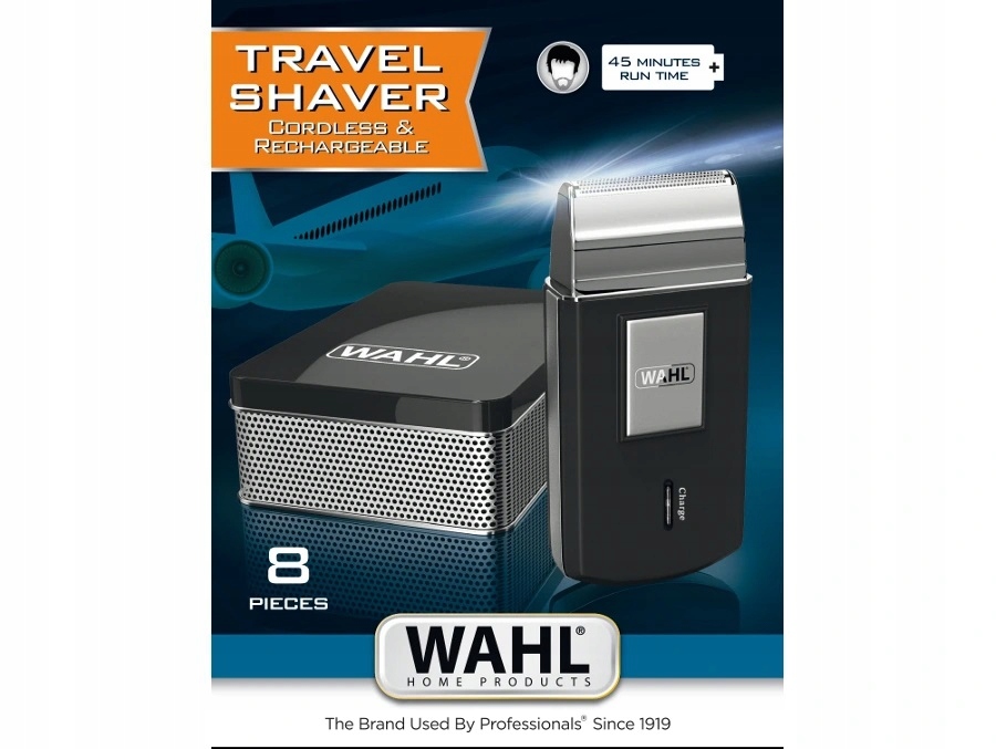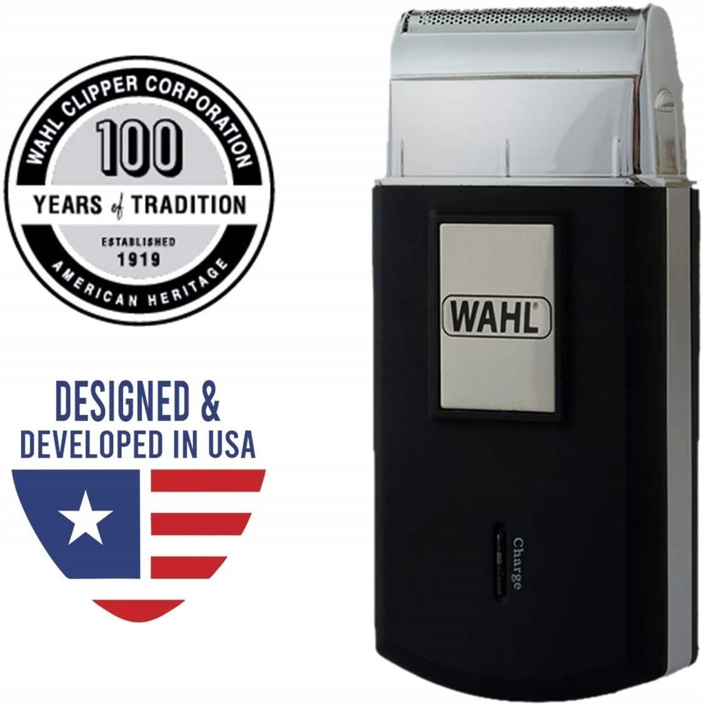 Małe rozmiary oraz niewielka waga golarki Wahl 3615-1016 czynią ją produktem idealnym dla podróżującego mężczyzny. Golarka jest bezprzewodowa, wyposażona w mocny akumulator, który po pełnym naładowaniu gwarantuje 45 minut pracy. W skład zestawu wchodzą dwa etui, jedno na cały zestaw, i drugie na samą maszynkę, szczoteczka do czyszczenia oraz zapasowy komplet tnący.