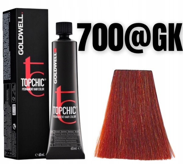 Goldwell Topchic jest to profesjonalna farba do włosów przeznaczona zarówno dla fryzjerów jak również do użytku domowego. Formuła farby wzbogacona w najnowsze technologie zapewnia 100% pokrycie włosów siwych. Sprawdzone składniki zawarte w farbie sprawiają, że intensywne kolory zachowują swoją głębie na dłużej. Oprócz tego krem koloryzujący chroni włosy przed uszkodzeniami. Technologia oparta na hydrolizie białka pszenicy gwarantuje włosom bezpieczeństwo, a panthenol łagodzi skórę głowy po farbowaniu. Krem koloryzujący bardzo dobrze sprawdzi się dla wrażliwej oraz alergicznej skóry głowy. Jako jedna z nielicznych farb, farba Goldwell Topchic w 100% kryje siwe włosy. Paleta kolorów farby Goldwell jest bardzo bogata, od ciepłych po zimne kolory, stąd każdy znajdzie idealny odcień dla siebie. Po farbowaniu włosy stają się miękkie oraz wyglądają zdrowo.