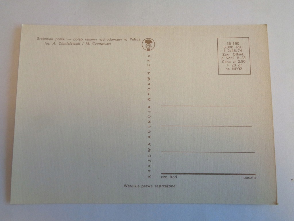 GOŁĘBIE RASOWE SREBRNIAK POLSKI 1974 r (12271087726)