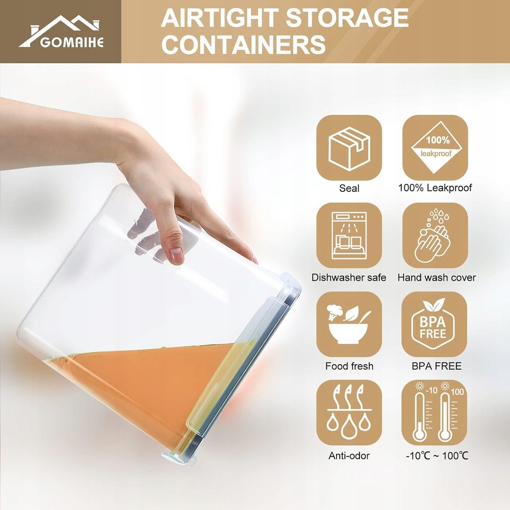 ⭐⭐Pojemniki do przechowywania żywności marki GoMaihe to doskonałe rozwiązanie dla osób pragnących utrzymać porządek w kuchni i zachować świeżość produktów spożywczych. Wykonane z wysokiej jakości tworzywa sztucznego, wolnego od BPA, zapewniają bezpieczeństwo przechowywanej żywności. Każdy pojemnik wyposażony jest w silikonowy pasek uszczelniający oraz cztery boczne zamknięcia, co gwarantuje hermetyczność i chroni zawartość przed wilgocią oraz powietrzem. Przezroczyste ścianki umożliwiają łatwą identyfikację zawartości, a możliwość układania pojemników jeden na drugim pozwala zaoszczędzić miejsce w szafkach czy lodówce. Dzięki różnorodnym rozmiarom pojemników, idealnie nadają się do przechowywania produktów takich jak makaron, ryż, mąka, musli, kawa czy płatki śniadaniowe. Dodatkowo, zestawy często zawierają etykiety wielokrotnego użytku, pisak oraz miarki, co ułatwia organizację i odmierzanie składników.