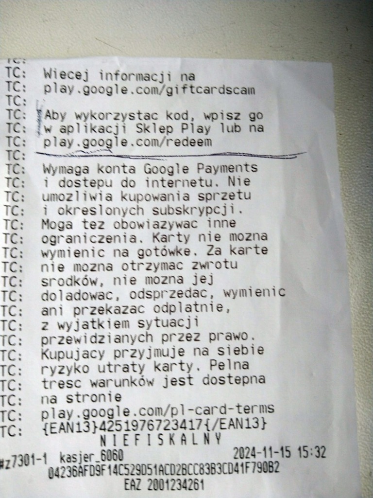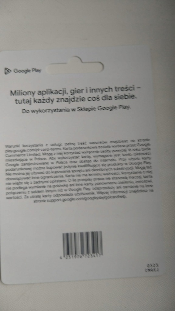 Mam na sprzedaż kartę podarunkowa Google Play na kwotę 600 zł. Sprzedaje, ponieważ osoba która podarowała mi przedmiot nie wiedziała że używam iPhone na którym nie działają takie karty podarunkowe.