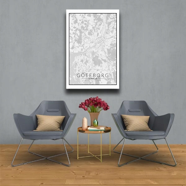 Goteborg mapa czarno biała - obraz na płótnie 90x120 cm