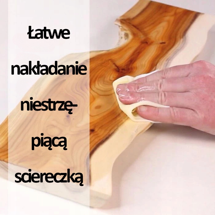 - wykończenia surowego drewna, nadając naturalny finisz (szczególnie polecany do blatów, desek do krojenia, stolarki drewnianej, elementów wyposażenia wnętrz)