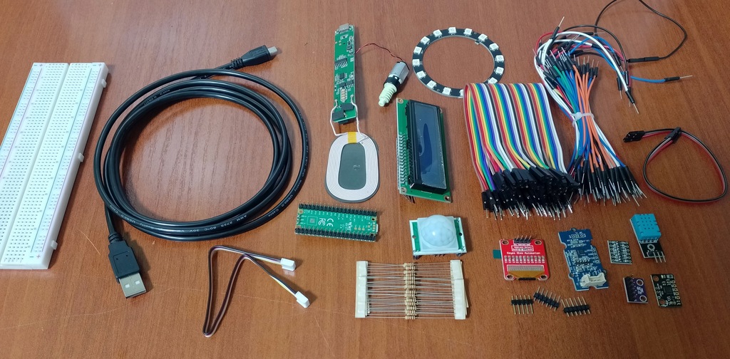 - Zestaw przewodów połączeniowych - żeńsko-męskie 20 cm - 40 szt. przewodów umożliwiających bezpośrednie połączenie modułów z płytką Raspberry Pi Pico.