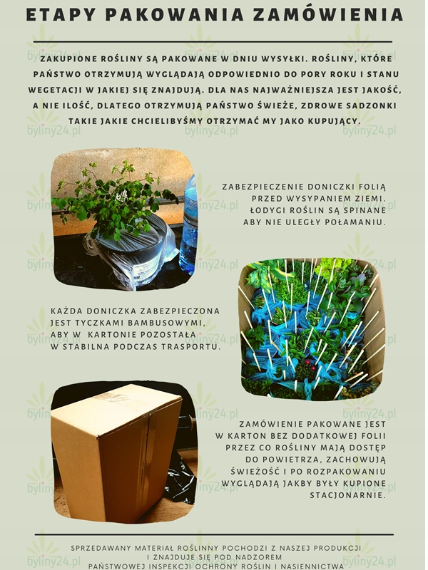 Rośliny są wysyłane w doniczkach, wielkość zależy od rodzaju rośliny.