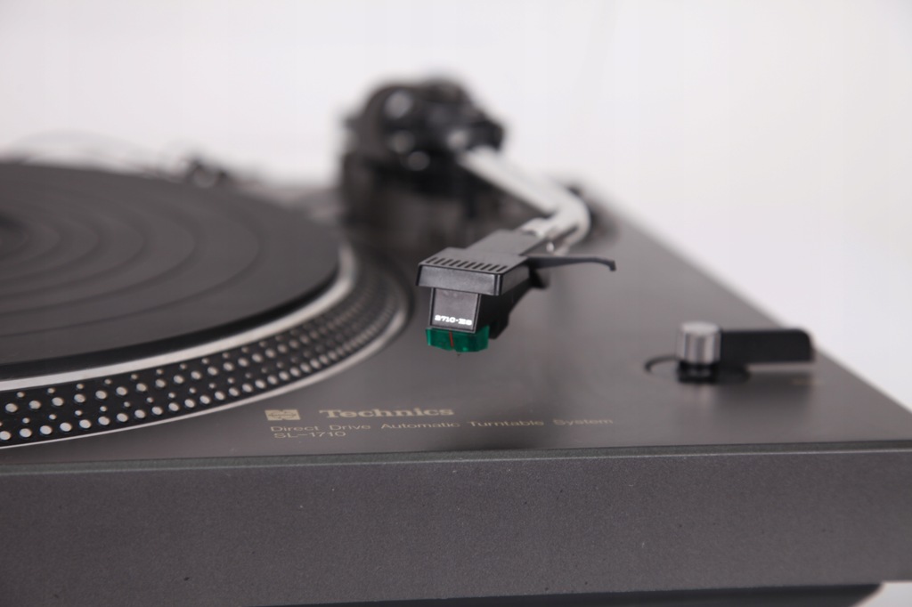 Oferuję w pełni sprawny gramofon marki Technics model SL-1710,napęd bezpośredni, półautomatyczny ( ramie ustawiamy manualnie na wybrane miejsce na płycie natomiast powraca na swoje miejsce po zakończeniu strony płyty lub po przesunięciu wajchy stop w dowolnym momencie ).Talerz odlew wraz z tarczą stroboskopową, tradycyjne dwie prędkości 33 i 45, ramię typu S bardzo dobrze łożyskowane, obudowa wykonana ze stopu aluminium oraz odseparowaniem napędu wraz z ramieniem od obudowy co przekłada się na separowanie drgań z zewnątrz tzw, zawieszenie pływające.