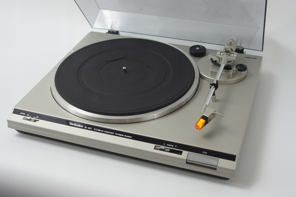 Gramofon w zestawie z wkładką i igłą, pokrywą, poddany kalibracji (ustawienie docisku igły, odpowiednie ustawienie wkładki w koszyku, ustawienie antyskatingu), gotowy do podłączenia i odtwarzania płyt.