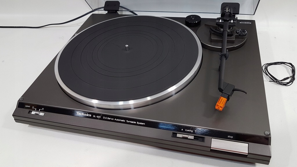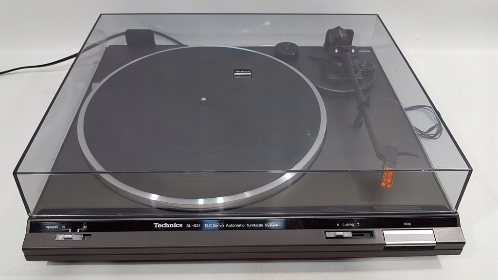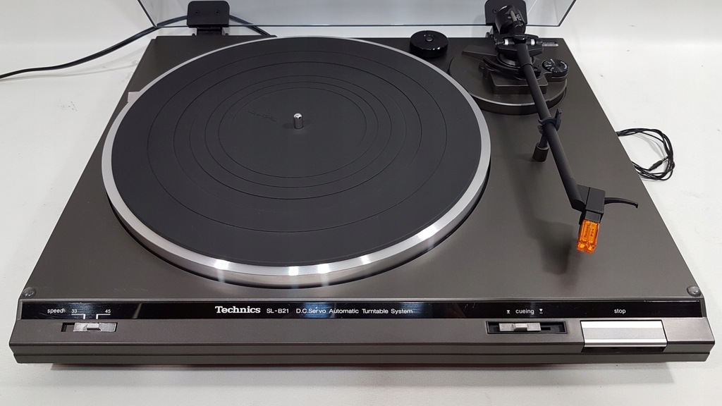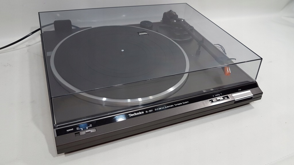 Zapraszam do zakupu gramofonu marki TECHNICS model SL-B21. Bardzo popularny i niezawodny gramofon o napędzie paskowym, półautomatyczny (ramie ustawiamy manualnie w dowolne miejsce na płycie a powraca automatycznie na swoje miejsce po zakończeniu strony płyty lub po naciśnięciu przycisku STOP w dowolnym momencie ), aluminiowy solidny talerz, tradycyjne dwie prędkości 33 i 45, ANTYSCATING, lekkie ramię proste bardzo dobrze ułożyskowane. Technicznie kompletnie sprawny, oryginalna wkładka z igłą TECHNIS P 24 w bardzo dobrym stanie, nowy pasek napędowy. Przewód zasilający, uziemiający oraz sygnałowy w komplecie. Gramofon jest po pełnym przeglądzie - czyszczeniu, smarowaniu, regulacji i kalibracji i tylko taki zabieg gwarantuje długą bezawaryjną, prawidłową pracę urządzenia. Gramofon jest bardzo ładny, pokrywa po profesjonalnej polerce.