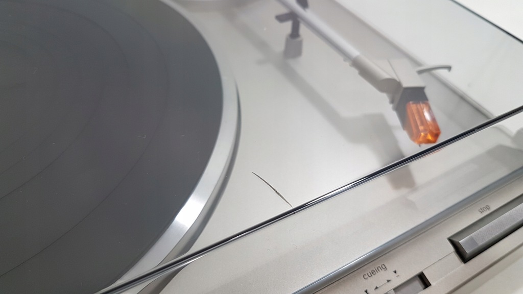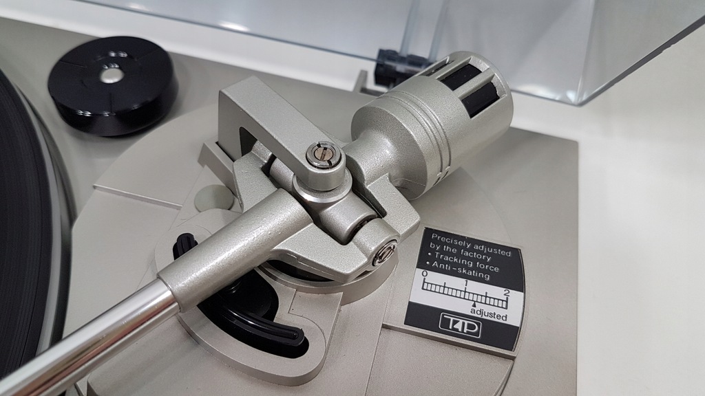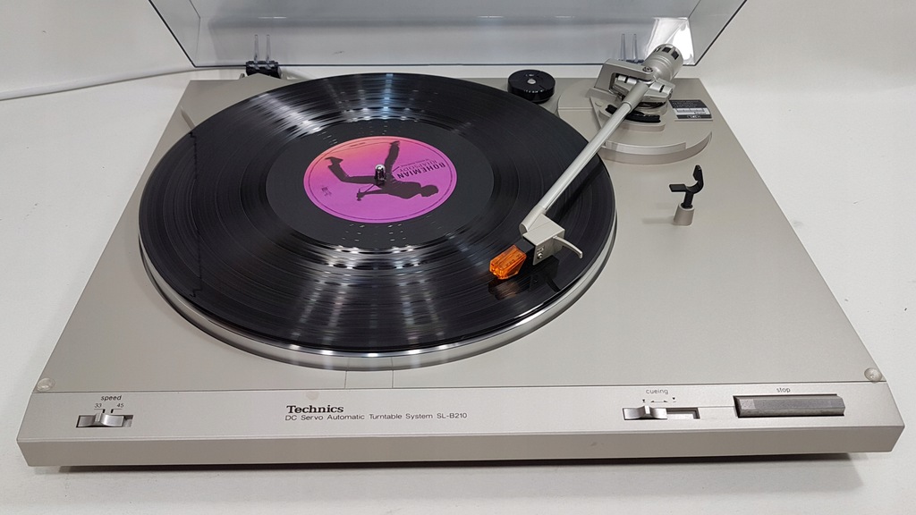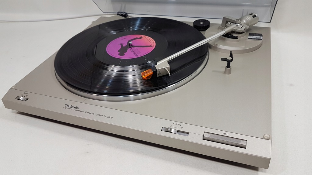 Zapraszam do zakupu gramofonu marki TECHNICS model SL-B210. Gramofon o napędzie paskowym, półautomatyczny ( ramie ustawiamy manualnie w dowolne miejsce na płycie natomiast samoczynnie powraca na swoje miejsce po zakończeniu strony płyty lub po naciśnięciu przycisku STOP w dowolnym momencie ), aluminiowy talerz, tradycyjne dwie prędkości 33 i 45, ANTI-SKATING, lekkie ramię proste bardzo dobrze ułożyskowane. Technicznie kompletnie sprawny, oryginalna wkładka TECHNICS P24 z nowa igłą, nowy pasek napędowy. Wysokiej jakości przewód zasilający, uziemiający oraz sygnałowy w komplecie. Gramofon jest po pełnym przeglądzie - czyszczeniu, smarowaniu, regulacji i kalibracji i tylko taki zabieg gwarantuje długą bezawaryjną, prawidłową pracę urządzenia. Gramofon jest bardzo ładny, pokrywa po profesjonalnej polerce ale posiada małe pęknięcie ujęte na zdjęciu. Super extra bezpiecznie spakowana wysyłka w cenie. Polecam.