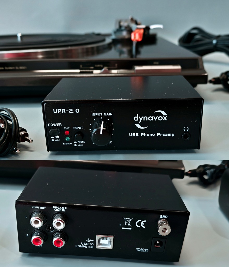 Przedwzmacniacz gramofonowy Dynavox UPR-2.0 to wysokiej jakości przedwzmacniacz gramofonowy lub liniowy USB 2.0 do systemów MM z wieloma najlepszymi funkcjami, takimi jak możliwość podłączenia gramofonu do komputera przez USB lub do wyjścia liniowego. do obsługi wzmacniacza bez wejścia gramofonowego lub słuchania dźwięku z gramofonu przez wyjście słuchawkowe bez komputera i/lub wzmacniacza. Z regulowanym poziomem wejściowym. Przedwzmacniacz gramofonowy Dynavox USB 2.0 UPR-2.0 może być zasilany przez złącze USB lub opcjonalny zasilacz (9 V AC/DC 300 mA - gniazdo 5,5 / 2,1 mm).