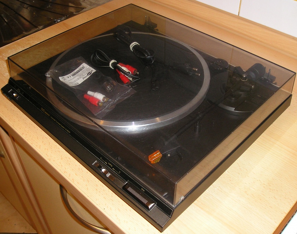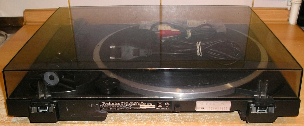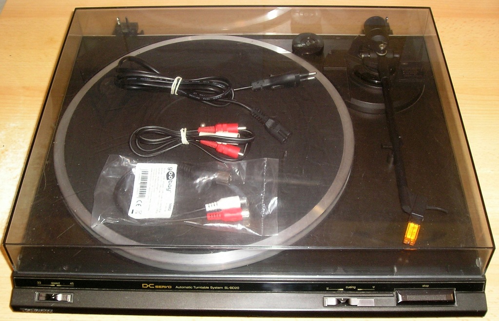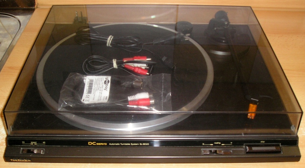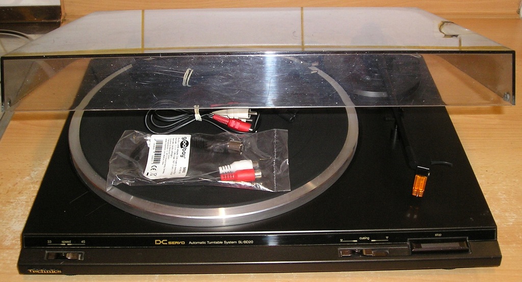 Gramofon Technics model SL BD20 czarny z oryginalną wkładką i igłą Technics PS 24 4TD , gra bardzo dobrze godny polecenia nie zniszczony , pokrywa w BDB stanie , obroty 45,33 napęd paskowy - pasek po wymianie , stabilizacja DC Servo , Ciężki aluminiowy talerz zapewniający stabilną pracę gramofonu ' Regulacja Anti skating 'Regulacja przeciwwagi ramienia 'Wymiary gramofonu to 430 x 100 x 380 mm ( szer x wys x głęb ). W zestawie kabel z złączami RCA ( cinch - chinch ), kabel zasilający 230V --- do polskich wzmacniaczy starszego typu, aby podłączyć w gniazdo phono jest przejściówka z 2 chinch na 5 wtykową końcówkę z bolcami - do zachodnich wzmacniaczy podłączymy bezpośrednio w gniazdo phono bo w nich zawsze była końcówki chinch - jeśli chodzi o współczesne wzmacniacze i amplitunery nowej generacji potrzebny jest przedwzmacniacz gramofonowy - cana 80zł - 100zł - można go dokupić na allegro i trzeba podłaczyć adapter w przedwzmacniacz a sam przedwzmaczniacz dalej w gniazdo AUX lub CD za pomocą drugiej pary kabli chinch chinch ,trzeba je dokupić oddzielnie od 5 zł ///////