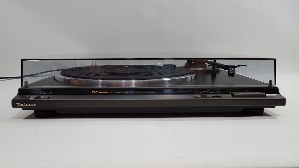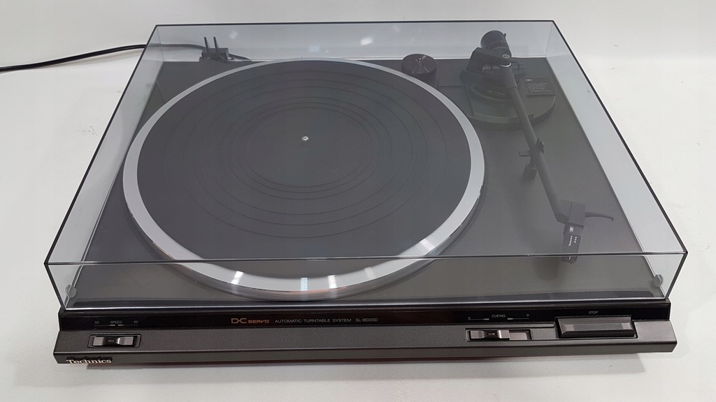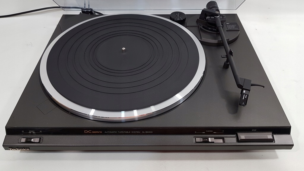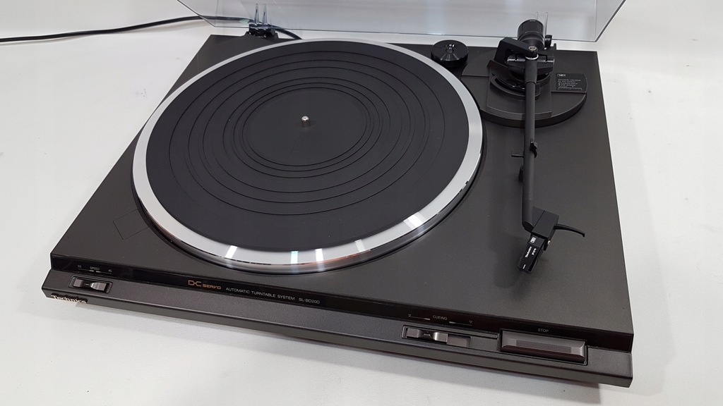 Zapraszam do zakupu gramofonu marki TECHNICS model SL-BD20D. Bardzo popularny i niezawodny gramofon o napędzie paskowym, półautomatyczny (ramie ustawiamy manualnie w dowolne miejsce na płycie a powraca automatycznie na swoje miejsce po zakończeniu strony płyty lub po naciśnięciu przycisku STOP w dowolnym momencie ), aluminiowy solidny talerz, tradycyjne dwie prędkości 33 i 45, ANTYSCATING, lekkie ramię proste bardzo dobrze ułożyskowane. Technicznie kompletnie sprawny, oryginalna wkładka z igłą TECHNICS P 34 w bardzo dobrym stanie, nowy pasek napędowy. Przewód zasilający, uziemiający oraz sygnałowy w komplecie. Gramofon jest po pełnym przeglądzie - czyszczeniu, smarowaniu, regulacji i kalibracji i tylko taki zabieg gwarantuje długą bezawaryjną, prawidłową pracę urządzenia. Gramofon jest bardzo ładny, pokrywa po profesjonalnej polerce.