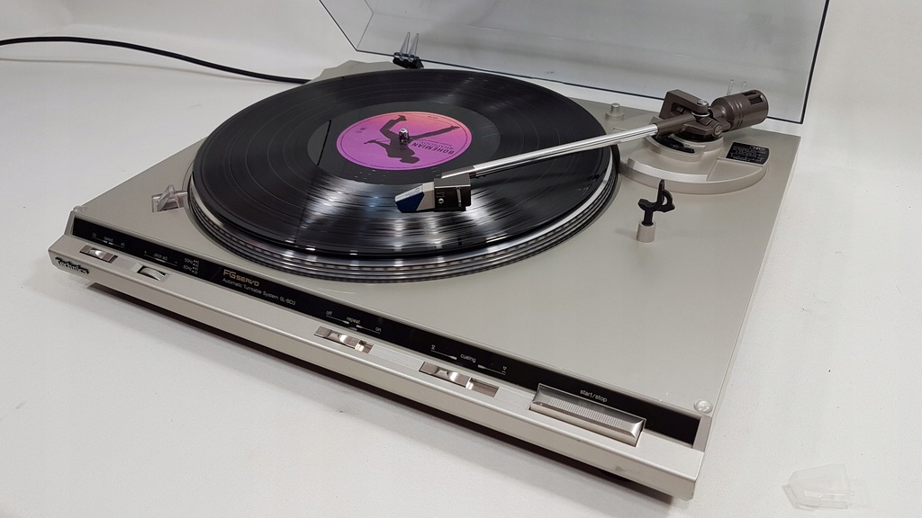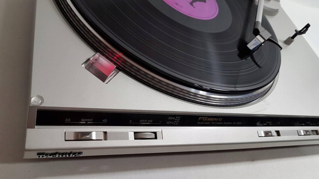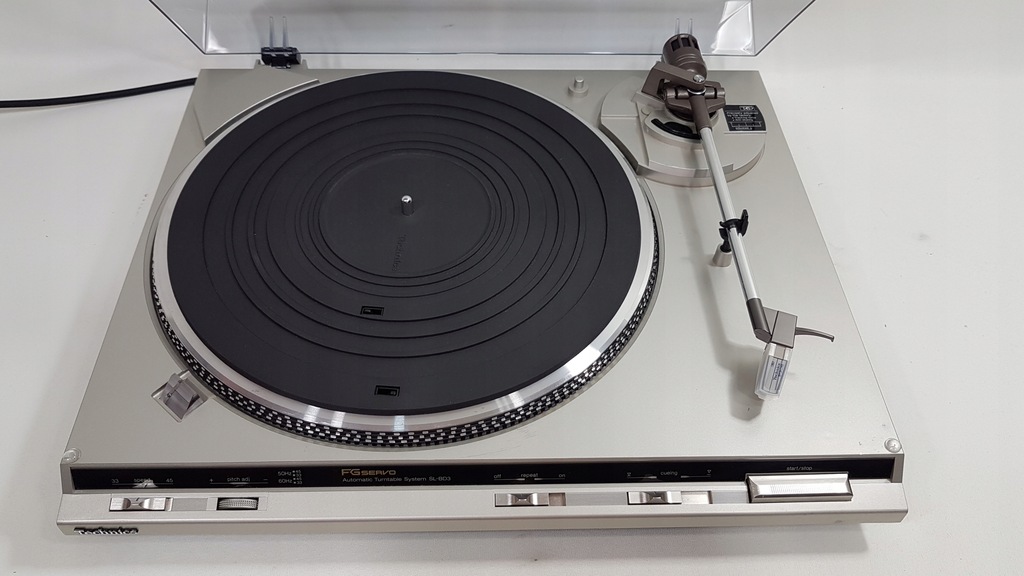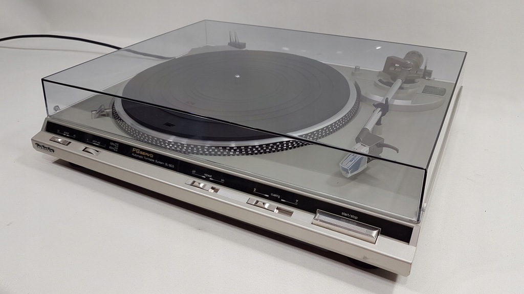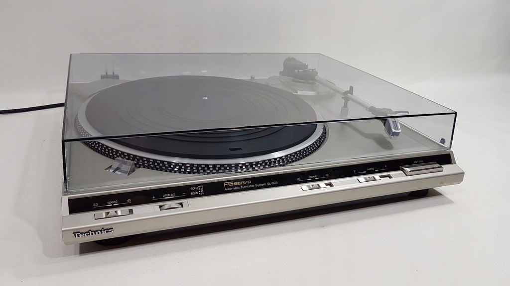 Zapraszam do zakupu gramofonu marki TECHNICS model SL-BD3. Bardzo popularny i niezawodny gramofon o napędzie paskowym, w pełni automatyczny ( po wciśnięciu przycisku START/STOP ramie samoczynnie ustawia się na początek płyty i powraca na swoje miejsce po zakończeniu strony płyty lub po naciśnięciu przycisku START/STOP w dowolnym momencie ), aluminiowy solidny talerz wraz z tarczą stroboskopową , tradycyjne dwie prędkości 33 i 45 płynnie regulowane, ANTYSCATING, funkcja REPEAT, lekkie ramię proste bardzo dobrze ułożyskowane. Automatyczne rozpoznawanie wielkości płyty lub jej brak na talerzu. Bez płyty gramofon nie odpali automatycznie. Zabezpiecza to igłę przed przypadkowym uruchomieniem gramofonu bez płyty. Technicznie kompletnie sprawny, oryginalna wkładka TECHNICS P30 z nową igłą, nowy pasek napędowy. Wysokiej jakości przewód zasilający, uziemiający oraz sygnałowy w komplecie oraz super extra bezpiecznie spakowana wysyłka w cenie . Gramofon jest po pełnym przeglądzie - czyszczeniu, smarowaniu, regulacji i kalibracji i tylko taki zabieg gwarantuje długą bezawaryjną, prawidłową pracę urządzenia. Gramofon jest bardzo ładny, pokrywa po profesjonalnej polerce.