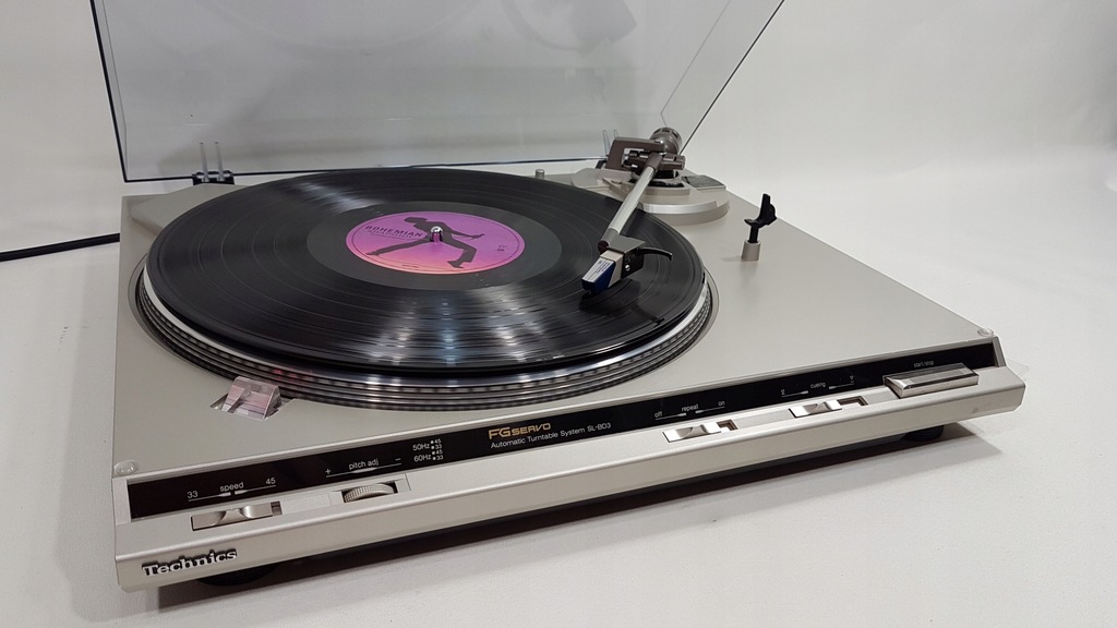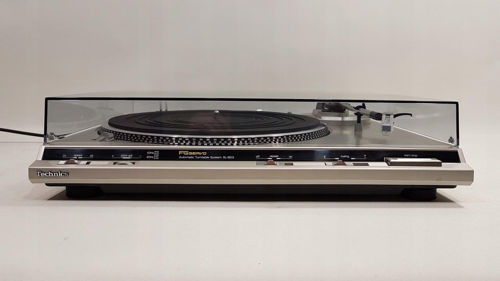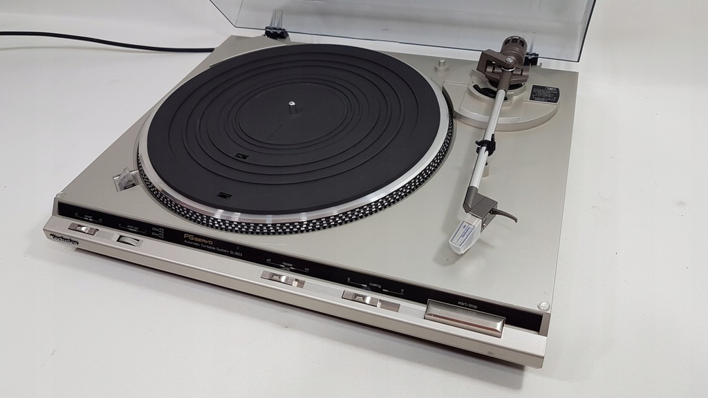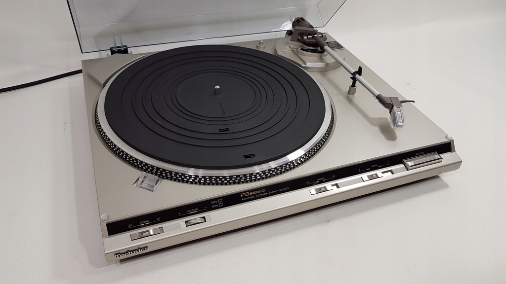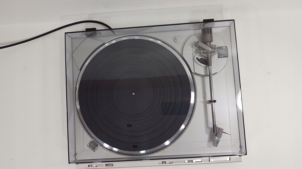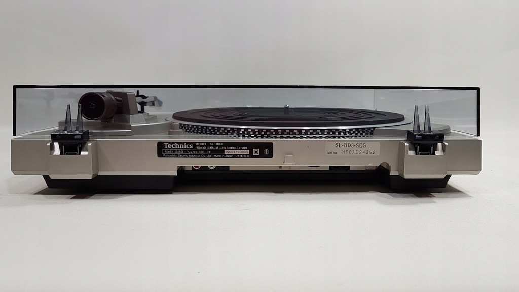 Zapraszam do zakupu gramofonu marki TECHNICS model SL-BD3. Bardzo popularny i niezawodny gramofon o napędzie paskowym, w pełni automatyczny ( po wciśnięciu przycisku START/STOP ramie samoczynnie ustawia się na początek płyty i powraca na swoje miejsce po zakończeniu strony płyty lub po naciśnięciu przycisku START/STOP w dowolnym momencie ), aluminiowy solidny talerz wraz z tarczą stroboskopową , tradycyjne dwie prędkości 33 i 45 płynnie regulowane, ANTYSCATING, funkcja REPEAT, lekkie ramię proste bardzo dobrze ułożyskowane. Automatyczne rozpoznawanie wielkości płyty lub jej brak na talerzu. Bez płyty gramofon nie odpali automatycznie. Zabezpiecza to igłę przed przypadkowym uruchomieniem gramofonu bez płyty. Technicznie kompletnie sprawny, oryginalna wkładka TECHNICS P30 z nową igłą, nowy pasek napędowy. Wysokiej jakości przewód zasilający, uziemiający oraz sygnałowy w komplecie oraz super extra bezpiecznie spakowana wysyłka w cenie . Gramofon jest po pełnym przeglądzie - czyszczeniu, smarowaniu, regulacji i kalibracji i tylko taki zabieg gwarantuje długą bezawaryjną, prawidłową pracę urządzenia. Gramofon jest bardzo ładny, pokrywa po profesjonalnej polerce.