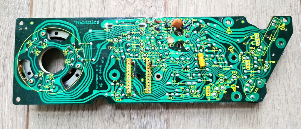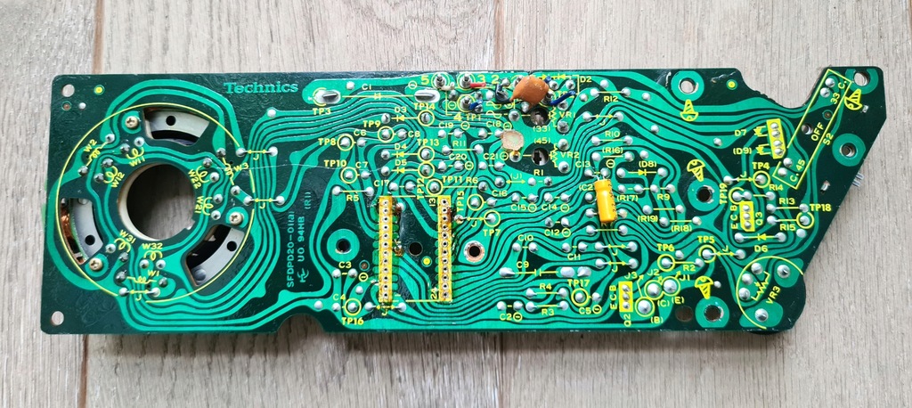 Z płytki wylutowany jeden układ scalony. Cześć wymontowana ze sprawnego gramofonu.