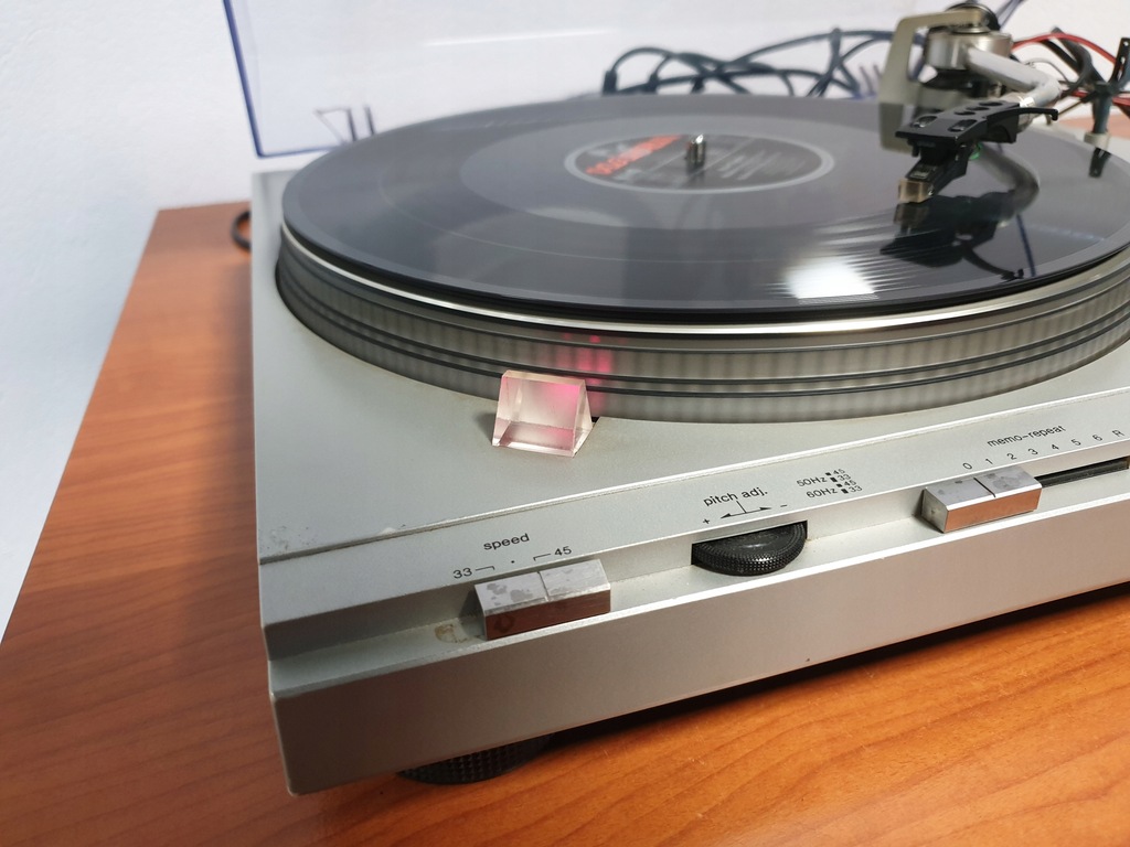 Mam dziś na sprzedaż kultowy gramofon Technics SL-D3 Gramofon w takim stanie wizualnym jak na przedstawionych zdjęciach , technicznie również wszystko sprawne, winda ładnie chodzi w zestawie bardzo dobra wkładka DUAL DN 249E wraz z igłą w bardzo ładnym stanie, kable czincze, kabel zasilający, kabel uziemiający w zestawie wraz z gramofonem, pokrywa w takim stanie jak na zdjęciach posiada normalne ślady użytkowania.