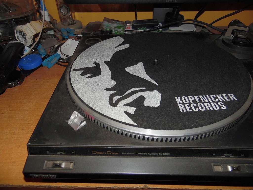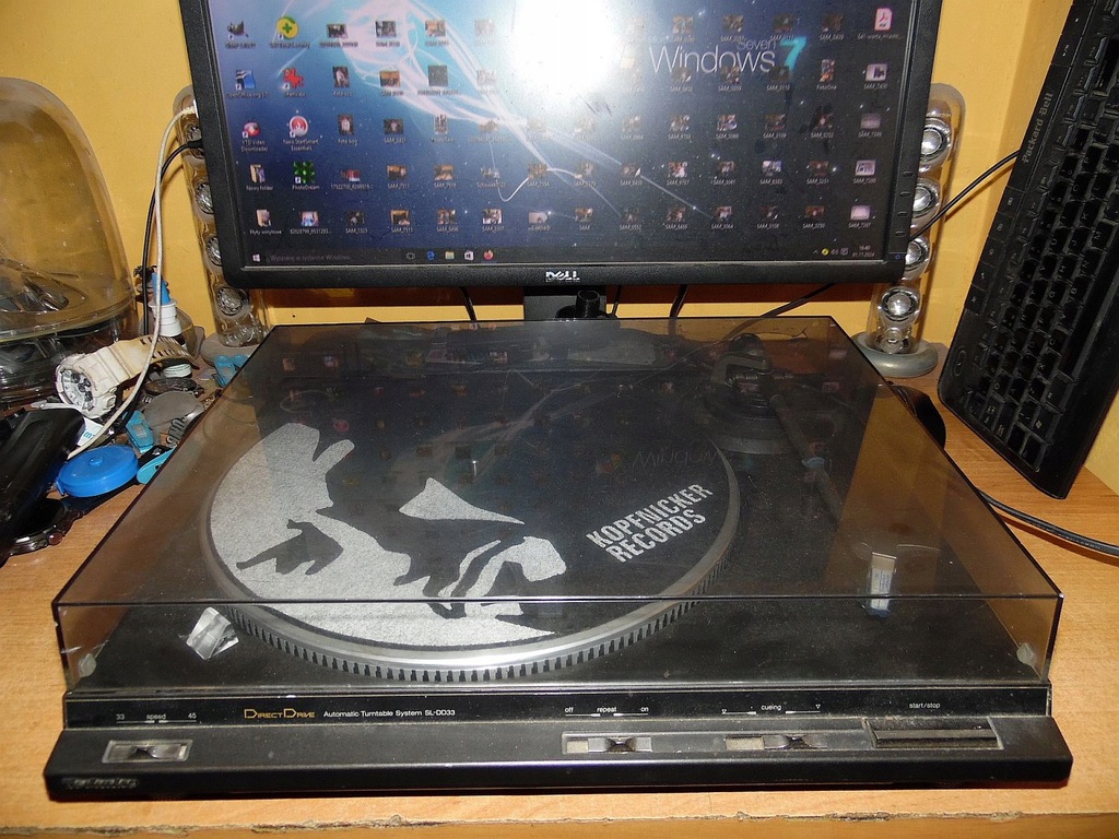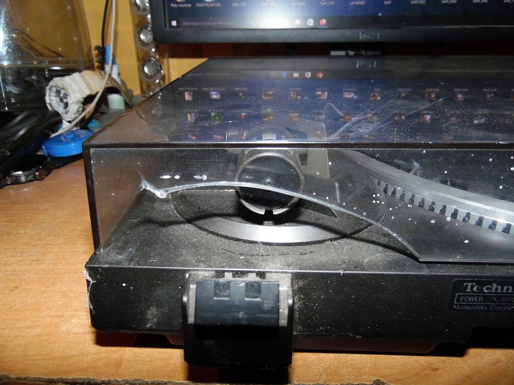 Gramofon włącza się kręci. Automatyka działa stroboskop świeci. Pokrywa jest zbita. Brak igły. Mata nieoryginalna.