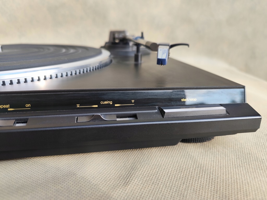 gramofon się włącza, silnik pracuje, po wciśnięciu START ramie idzie nad płytę ale nie opada. Po wciśnięciu STOP ramie wraca na swoje miejsce.
