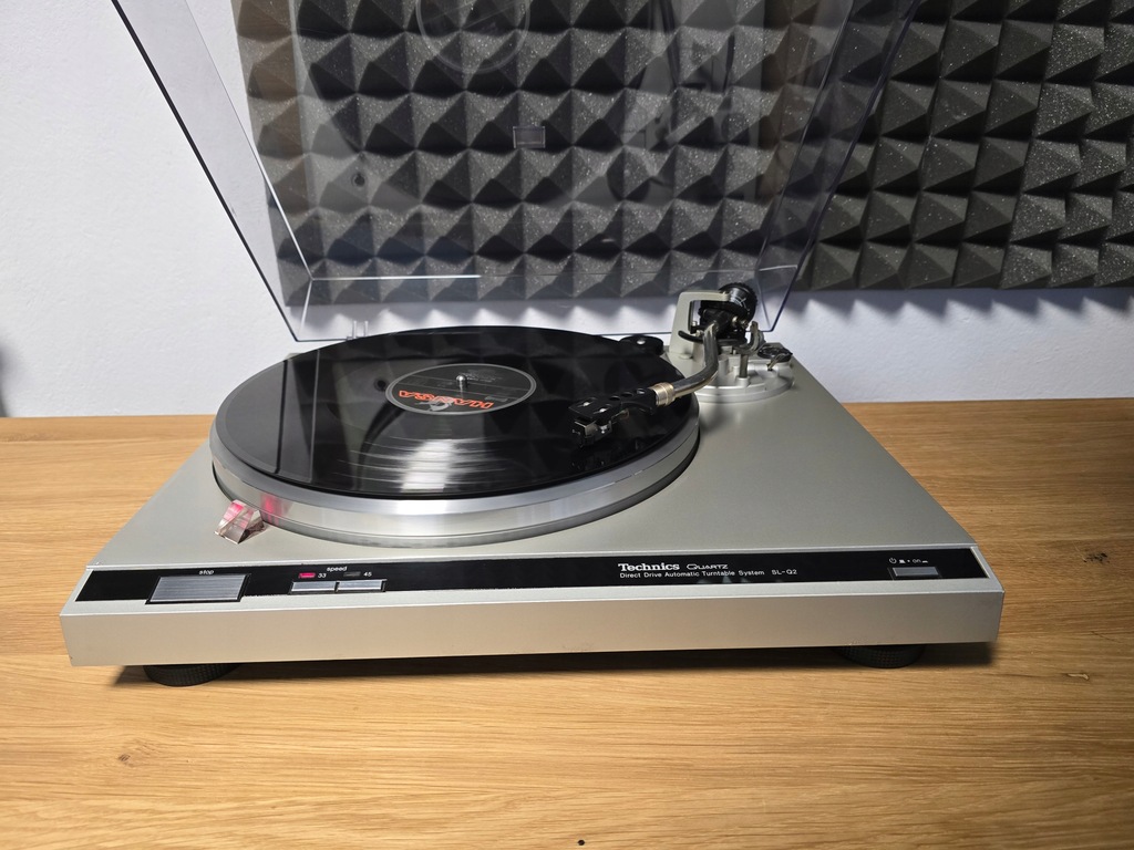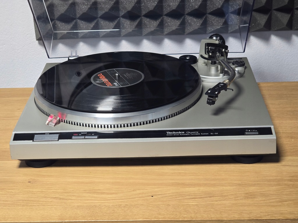 Na sprzedaż kultowy gramofon Technics SL-Q2 w kolorze srebrnym. Gramofon w pełni sprawny technicznie jest to gramofon półautomatyczny z kwarcową stabilizacją obrotów. Wkładka z igła widoczna na zdjęciach w zestawie w bardzo dobrym stanie + oryginalny krążek do singli i kompletne okablowanie. Pokrywa z całymi niepołamanymi zawiasami. Wygląd wizualny widoczny na zdjęciach jak na swój wiek bardzo ładny.