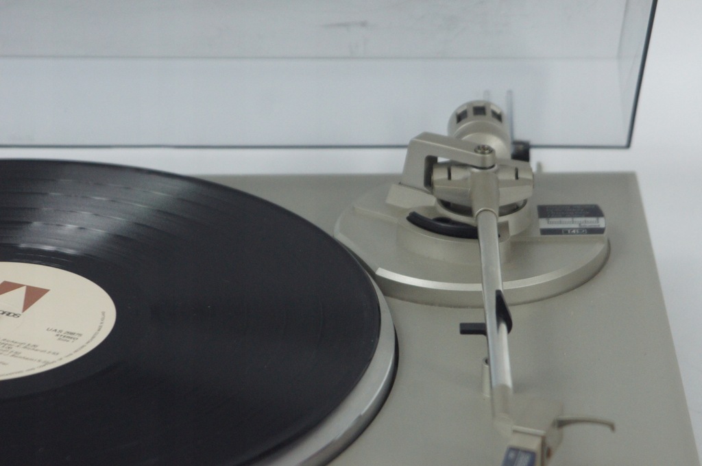 Gramofon w zestawie z wkładką i igłą, pokrywą (nie ma jej na zdjęciach), poddany kalibracji (ustawienie docisku igły, odpowiednie ustawienie wkładki w koszyku, ustawienie antyskatingu), gotowy do podłączenia i odtwarzania płyt.