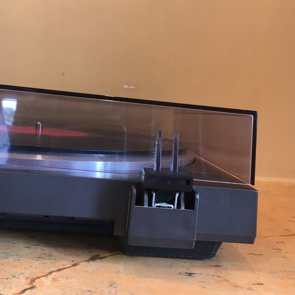 Gramofon w **bardzo dobrym stanie technicznym i wizualnym** – zadbany, używany sporadycznie. Wszystkie funkcje działają poprawnie, talerz startuje płynnie i stabilnie, ramię automatycznie wraca na miejsce po zakończeniu odtwarzania. Pokrywa w komplecie, posiada drobne ryski – typowe ślady użytkowania.