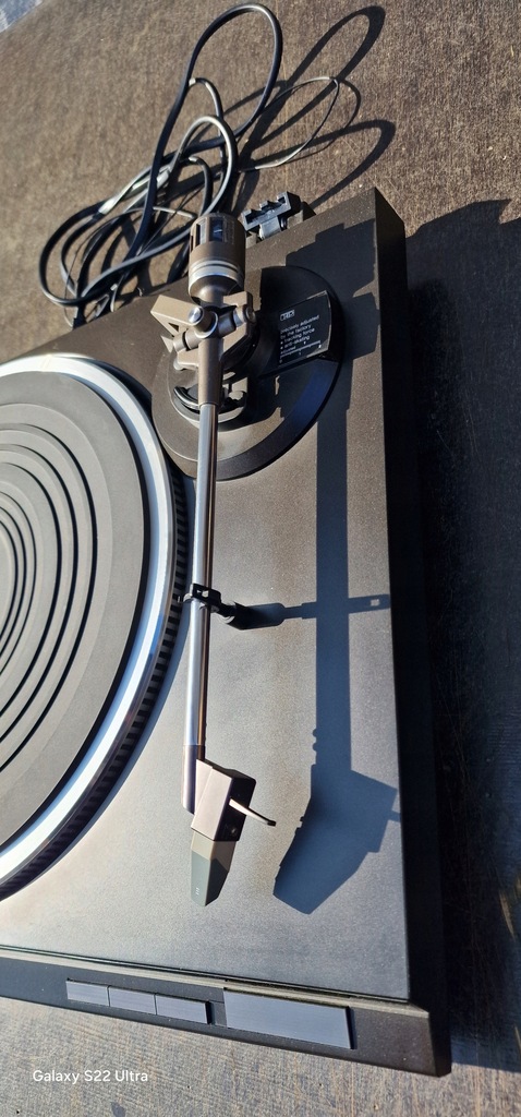Egzemplarz używany, sprawny, igła gra ale dla jednych dobra dla innych niedobra więc dodaję ją gratis.pokrywa ma ulamane wpusty do zawiasów ( są w zawiasach więc można skleić na stałe)