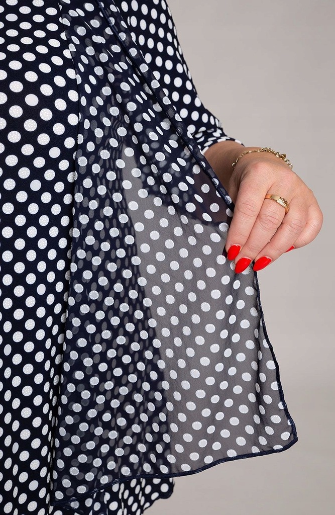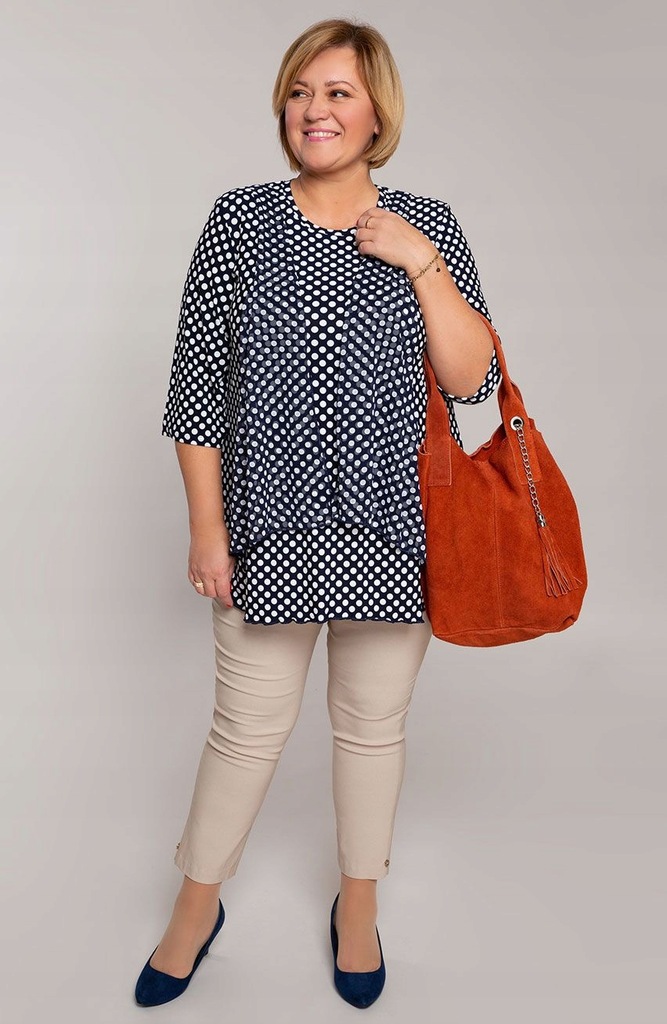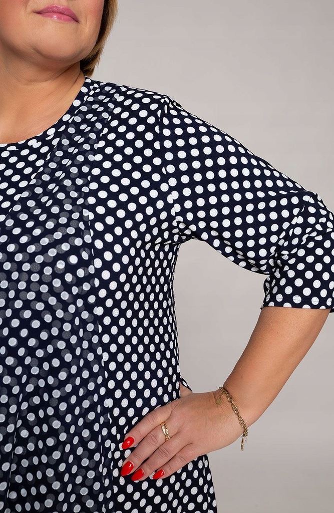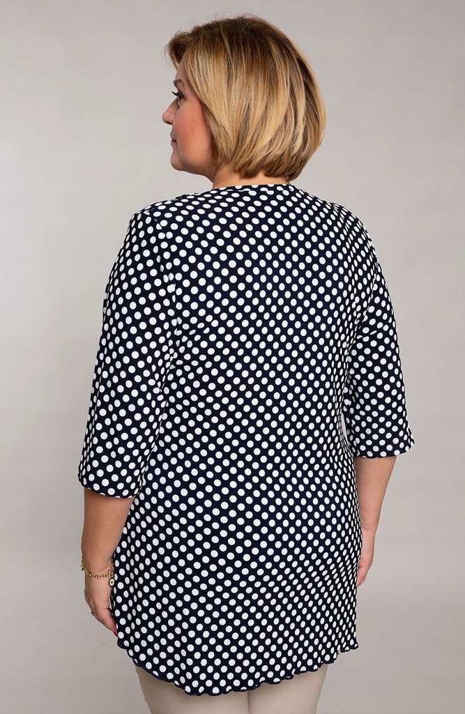 Ta elegancka tunika w oryginalny wzór, to wygodna propozycja do codziennych stylizacji. Dzięki miękkiej dzianinie zapewni komfort noszenia. Tunika będzie idealnie komponować się z różnymi modelami spodni i spódnic.