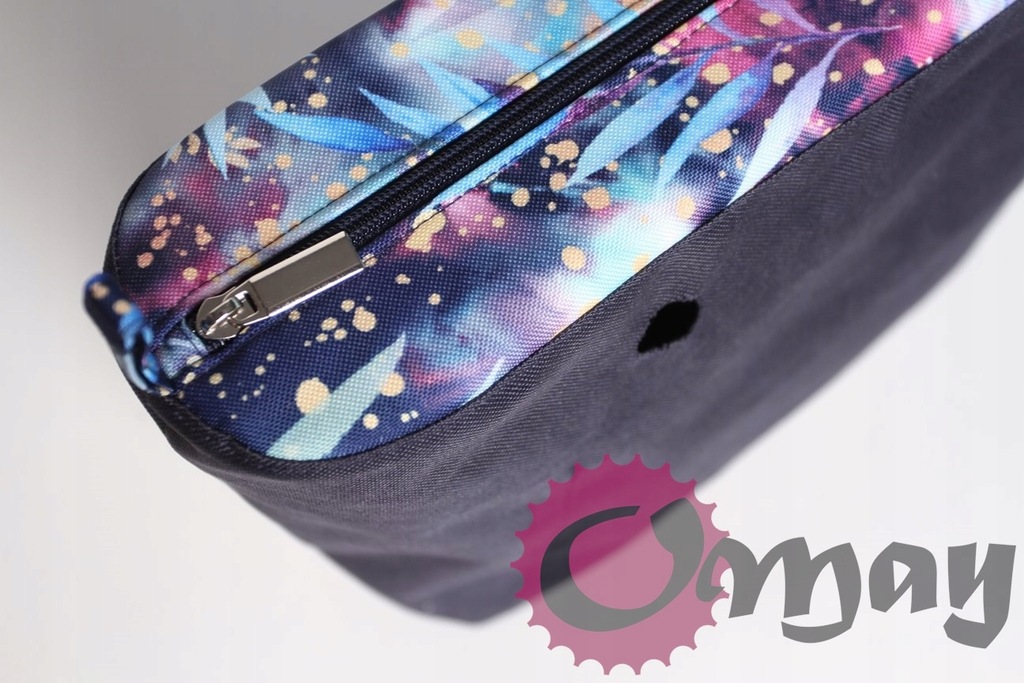 ⚡️ Granatowy organizer do OBAG MINI kwiaty róż turkus 2 kieszenie wkład OMAY ⚡️