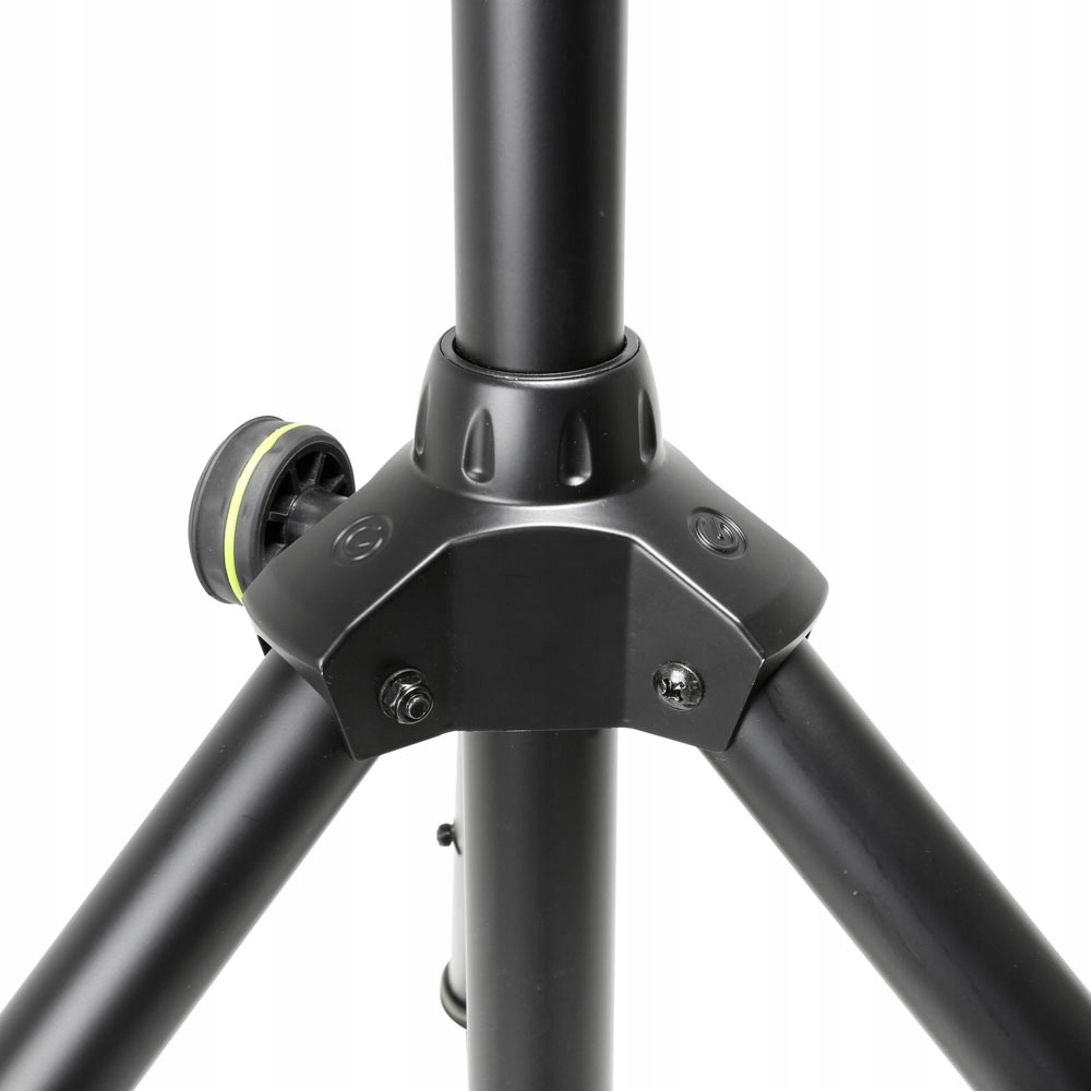 Statyw głośnikowy z zawieszeniem pneumatycznym. Wykonany z aluminium. Wyposażony w zintegrowaną pneumatykę w celu zapewnienia łatwego opuszczania. Trójnóg z kołnierzem z odlewanego ciśnieniowo aluminium. Z ergonomicznymi śrubami regulacyjnymi.