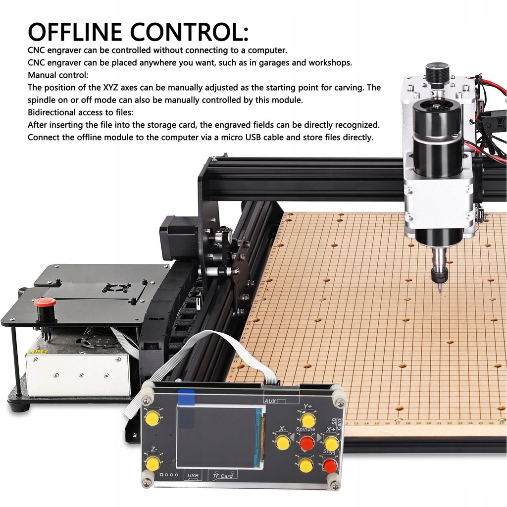 Funkcja:1. Możliwości sterowania w trybie offline: Wykorzystaj modu kontrolera offline, aby używać grawerki CNC bez komputera, co zapewnia wygodę ustawiania maszyny w dowolnym miejscu, na przykad w garażu lub warsztacie.