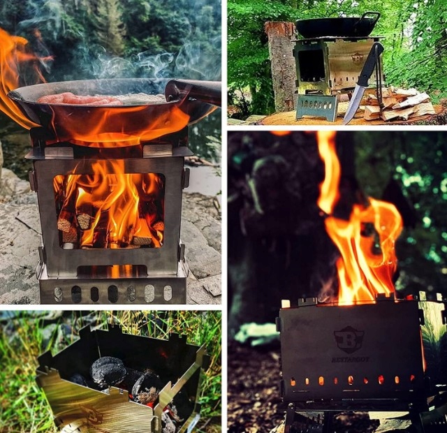 - 【Doskonała wentylacja i łatwe czyszczenie】 Przenośny piec na drewno Bestargot ma otwory wentylacyjne po obu stronach, co znacznie poprawia przepływ powietrza. Obszerny otwór z przodu ułatwia dodawanie drewna. Na górze mini pieca na drewno znajduje się otwór do wypalenia, który pozwala skoncentrować siłę ognia i przyspieszyć gotowanie.