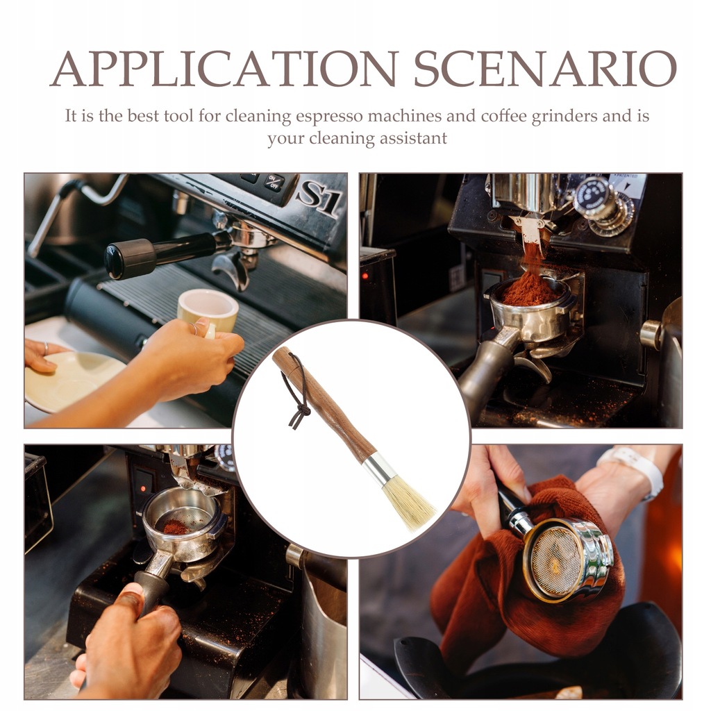 This is a cleaning brush for cleaning coffee filters and grinders in general, made of wood, material, sturdy and durable. Works with all types of coffee machines and gently wipes your machine. It is the best tool for cleaning espresso machines and coffee grinders and is your cleaning assistant.