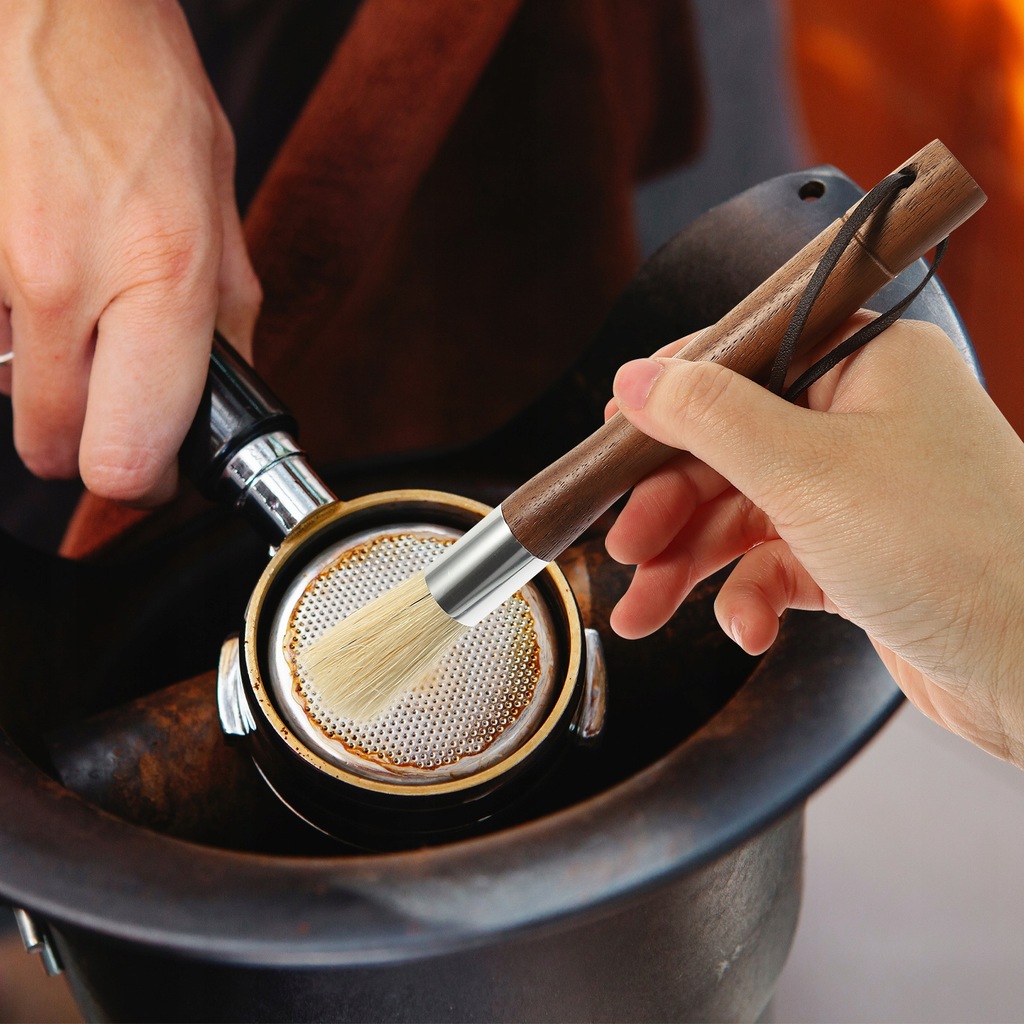 For proper maintenance, espresso equipment must be kept off the ground, and this brush is perfect for it.