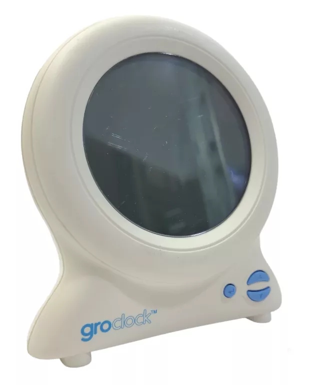 Groclock pomaga dzieciom, które są zbyt małe, aby odczytać normalny zegar, zrozumieć za pomocą kolorów i obrazków, kiedy jest pora wstawania oraz spania.