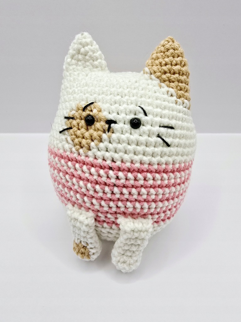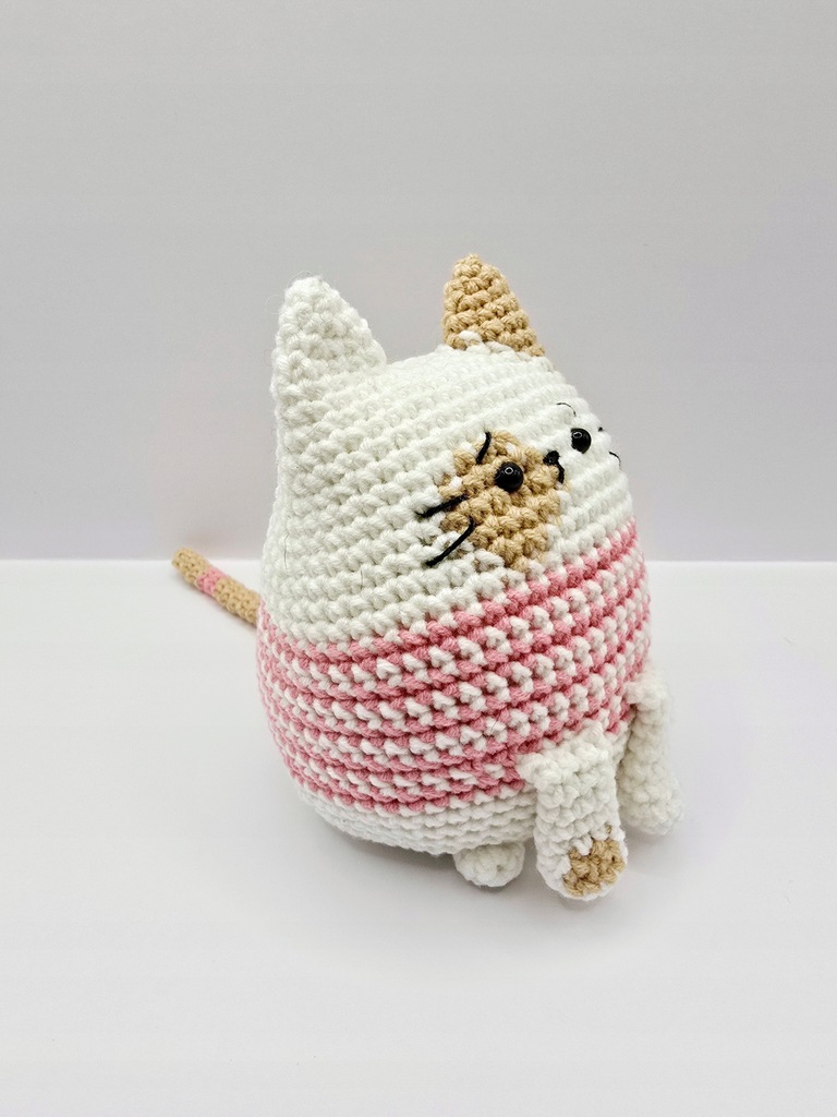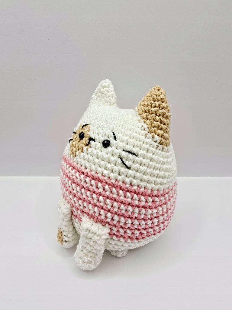 Wyjątkowy gruby kot wykonany na szydełku. Wysokość ok.13 cm