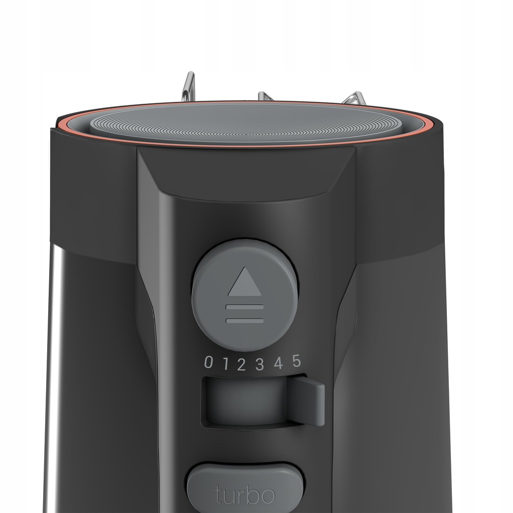 - 5 poziomów prędkości i dodatkowy poziom turbo miksera gwarantują doskonałe rezultaty przy każdym zastosowaniu, od ciasta po desery.