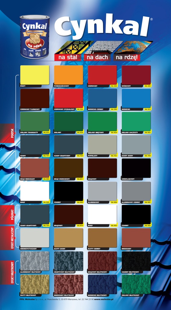 CYNKAL jest gruntoemalią akrylową do malowania powierzchni stalowych, ocynkowanych,