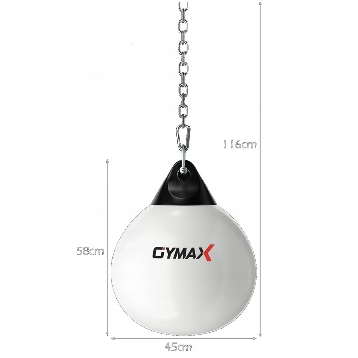 Worek bokserski w formie łezki i wysokiej jakości materiały zapewniają trwałość na wiele lat. Dzięki powierzchni o wysokim współczynniku odbicia i wypełnieniu wodą, możesz trenować bez ryzyka kontuzji. Ergonomiczna konstrukcja worka doskonale dopasowuje się do dłoni, nadgarstków, stawów i ramion. Regulowany łańcuch zawieszający, który jest dołączony, umożliwia łatwe zamocowanie worka na stojaku bokserskim, ścianie lub suficie, co pozwala na trening w domu lub na siłowni.