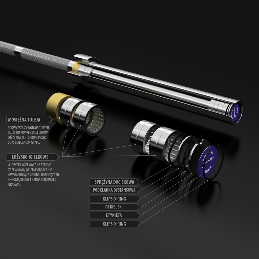 GRYF OLIMPIJSKI SZTANGA 220cm 18,5 kg + ZACISKI