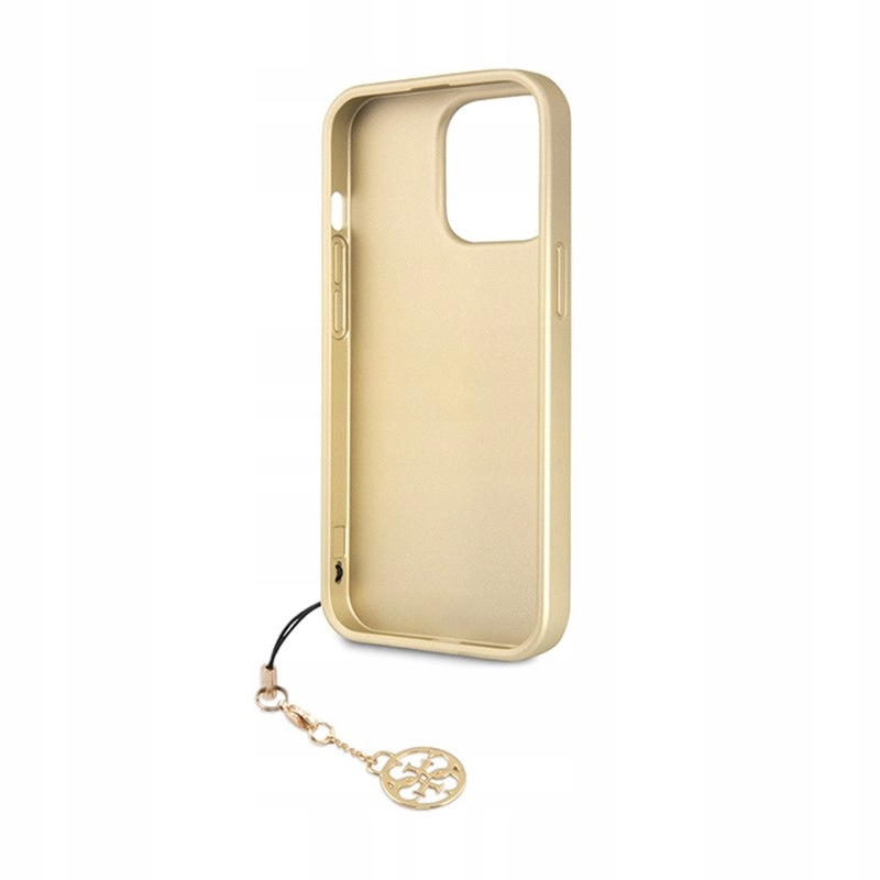 Dodatkiem dopełniającym oryginalność oraz elegancję etui jest czarująca zawieszka w kolorze bladego złota, tworząca zrównoważone połączenie kultowych elementów Guess.