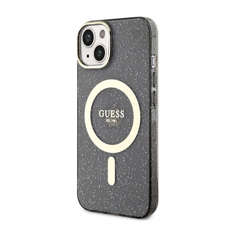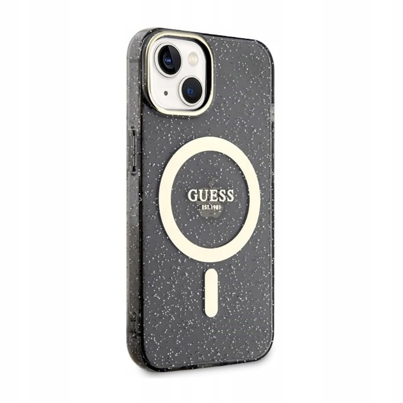 Guess Glitter Gold MagSafe - Etui iPhone 14 Plus (Czarny)