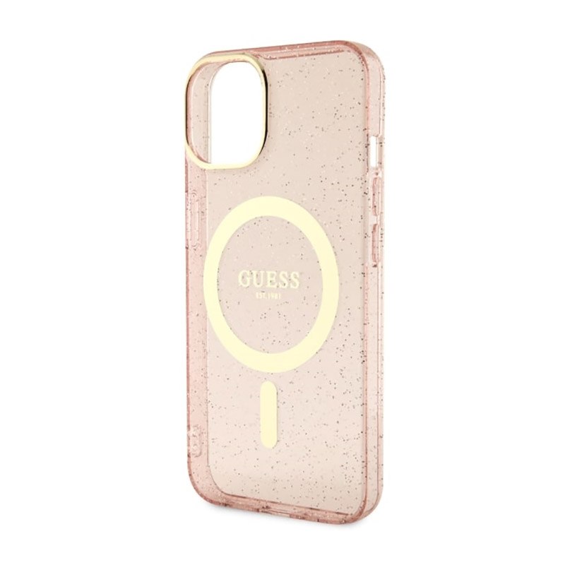 Guess Glitter Gold MagSafe - Etui iPhone 14 Plus (Różowy)