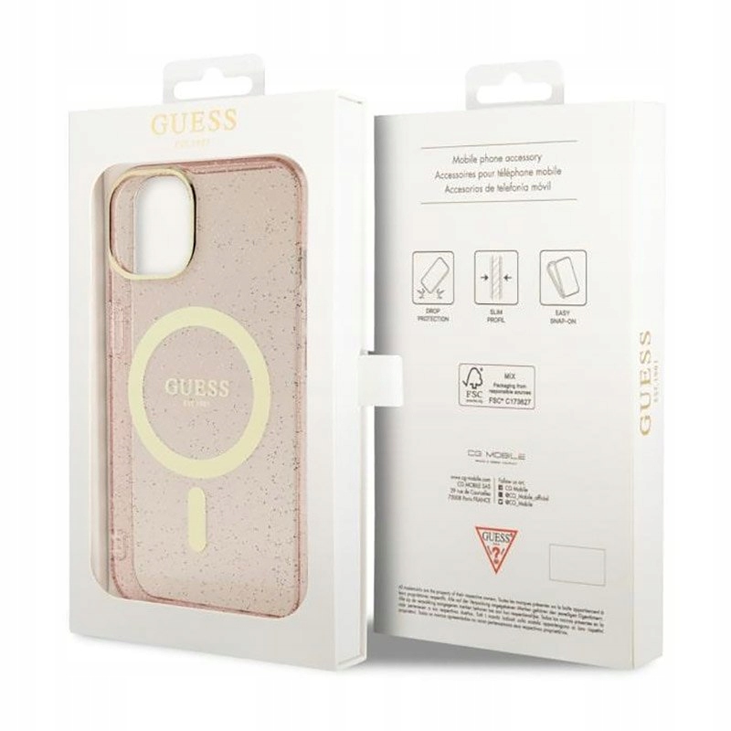 Guess Glitter Gold MagSafe to wysokiej jakości, eleganckie etui, zapewniające ochronę przed porysowaniem i uszkodzeniami urządzenia. Pokrowiec wyróżnia się wysoką jakością wykonania, niesamowitą funkcjonalnością oraz przepięknym wyglądem.
