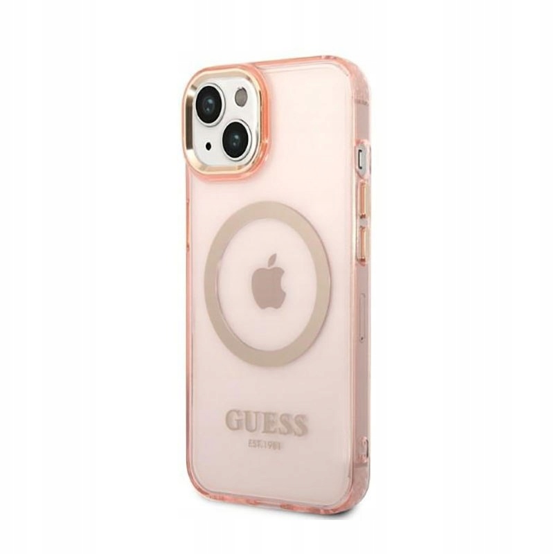 Guess Gold Outline Translucent MagSafe - Etui iPhone 14 Plus (różowy)