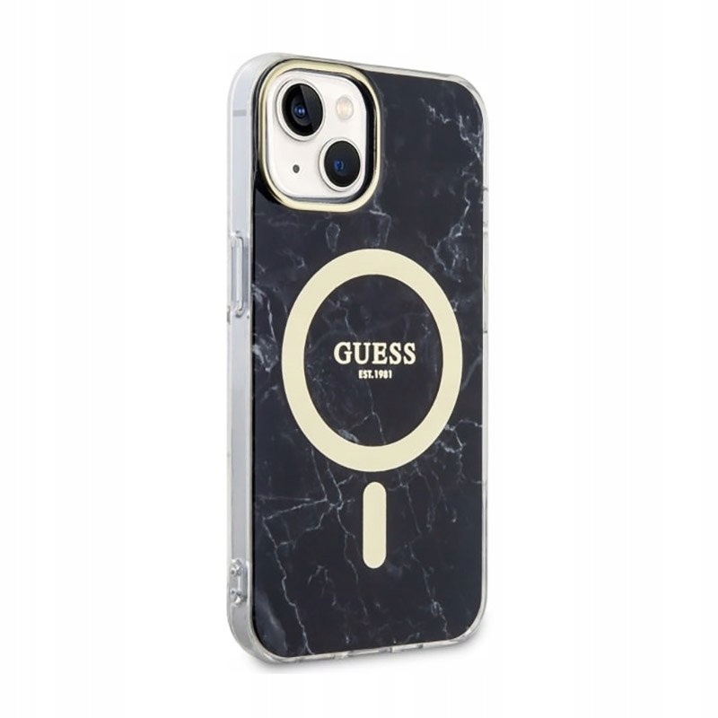 Guess Marble MagSafe - Etui iPhone 14 Plus (Czarny)