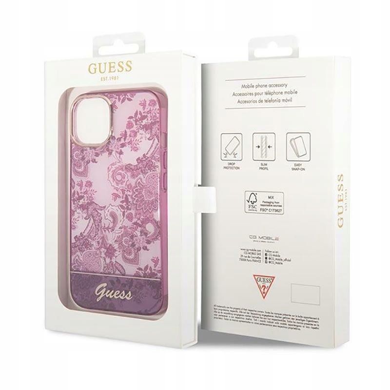 Guess Porcelain Collection - Etui iPhone 14 Plus (fuksja)